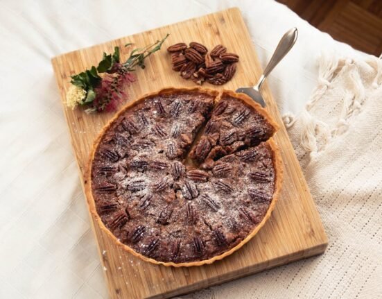 Šis pyragas – tikra klasika: traškus sviestinis pagrindas, kvapnus karamelinis įdaras ir gausus pekano (karijų) riešutų sluoksnis. Idealiai tinka rudens vakarams ar šventiniam
